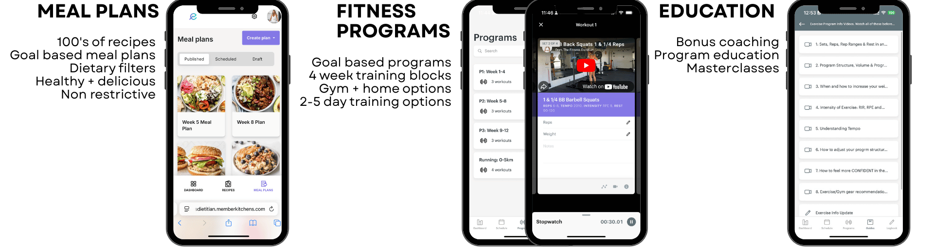 So you can access the tools, nutrition plans and fitness programs created by a qualified Sports Dietitian, Nutritionist and Personal Trainer (that's me 🙋🏼‍♀️) to get you REAL, SUSTAINABLE results.Â